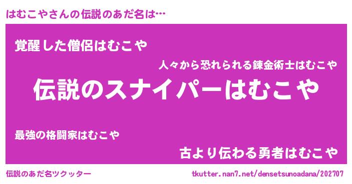 | 胡散臭い通販商品みたいなあだ名 | 『必ず成功する霊験あらたかなお札…その名も「はむこや」』 |