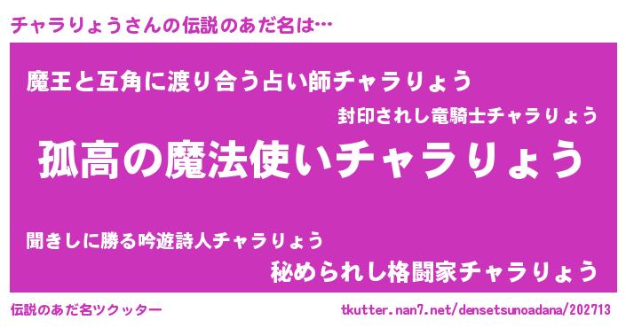 | 女子向けラノベタイトル風あだ名 | 『チャラりょうなんてお断りですっ。』 |