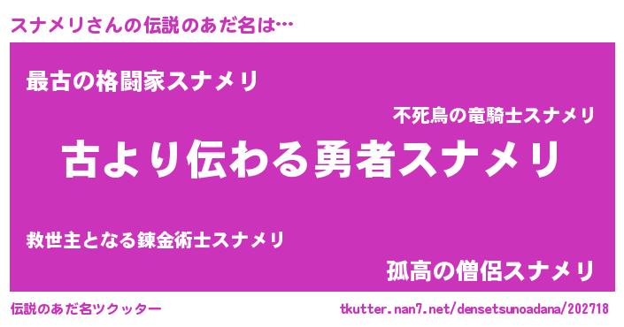 | ヒーロー風カッコイイあだ名 | 『サイバー戦士スナメリ』『ネオスナメリ』 |