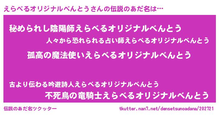 | 意味不明あだ名 | 『自称えらべるオリジナルべんとう』 |