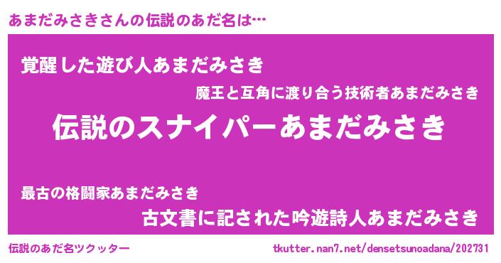 | 胡散臭い通販商品みたいなあだ名 | 『必ず成功する霊験あらたかなお札…その名も「あまだみさき」』 |