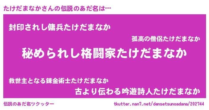 | ファンタジー風あだ名 | 『エターナルタケダマナカー』 |