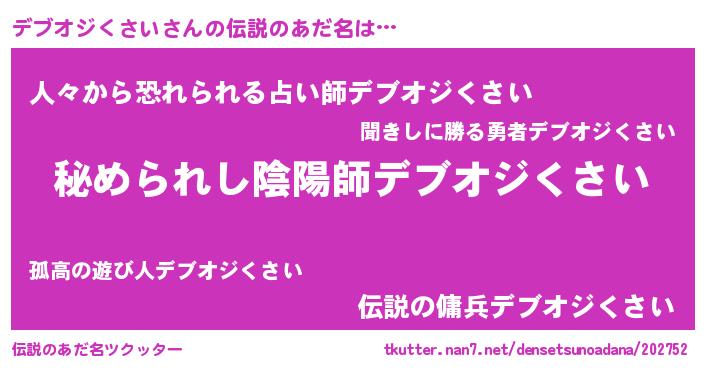 | 意味不明あだ名 | 『デブオジくさいフォーエバー』 |