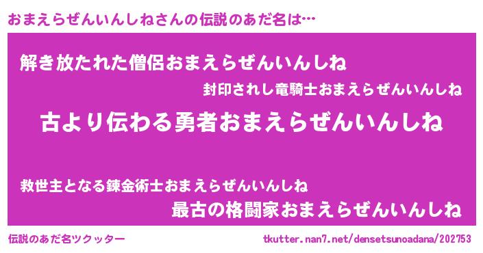 | 欧米人風あだ名 | 『トリンドルおまえらぜんいんしね』 |