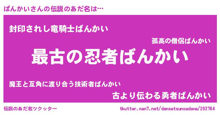 | 意味不明あだ名 | 『ばんかいフォーエバー』『自称ばんかい』 |