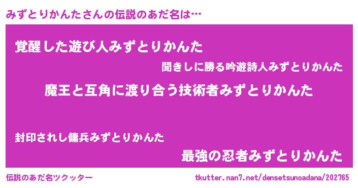 | 欧米人風あだ名 | 『ダニエルみずとりかんた』 |