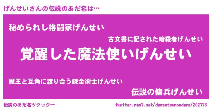 | ヒーロー風カッコイイあだ名 | 『仮面ゲンダー』『炎刃騎士ゲン』 |