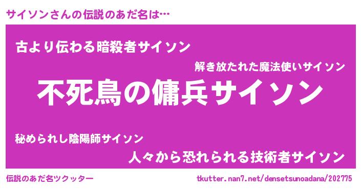 | 男性向けラノベタイトル風あだ名 | 『サイソンの憂鬱』『サイソンスレイヤー』 |