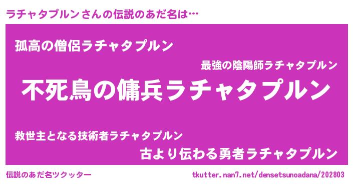 | ヒーロー風カッコイイあだ名 | 『スーパーラチャタプルン』 |