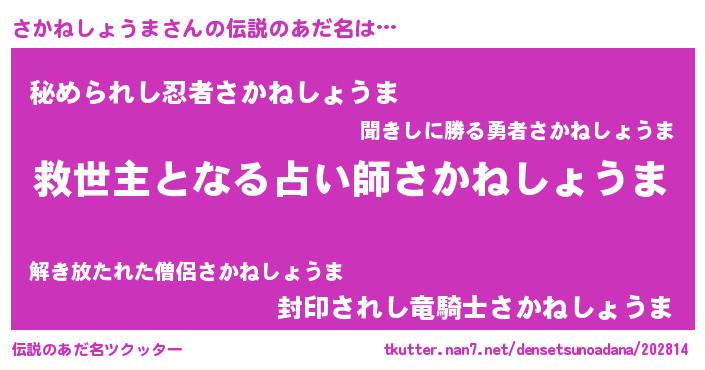 | 意味不明あだ名 | 『自称さかねしょうま』 |