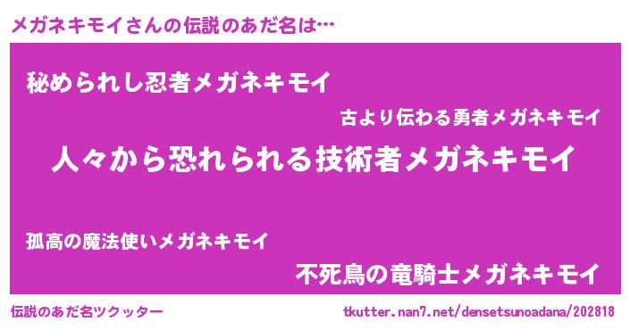 | 意味不明あだ名 | 『自称メガネキモイ』 |