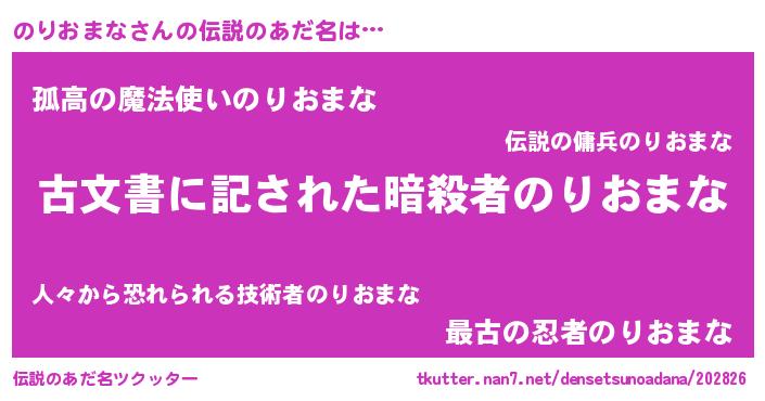 | ヒーロー風カッコイイあだ名 | 『ネオノリオマナ』『幻影騎士ノリ』 |