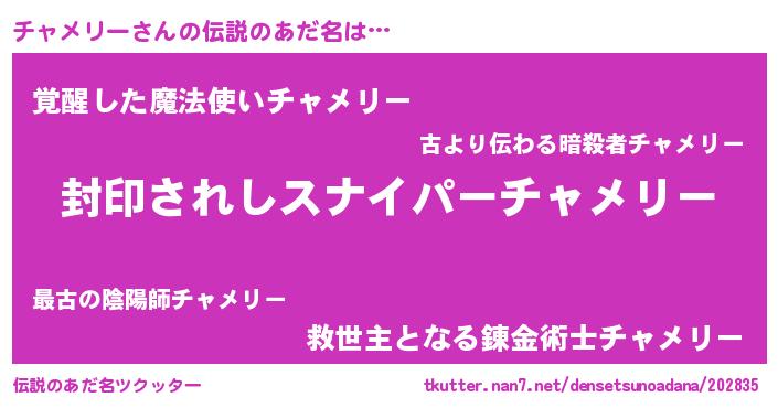 | 男性向けラノベタイトル風あだ名 | 『チャメリーアートオンライン』 |