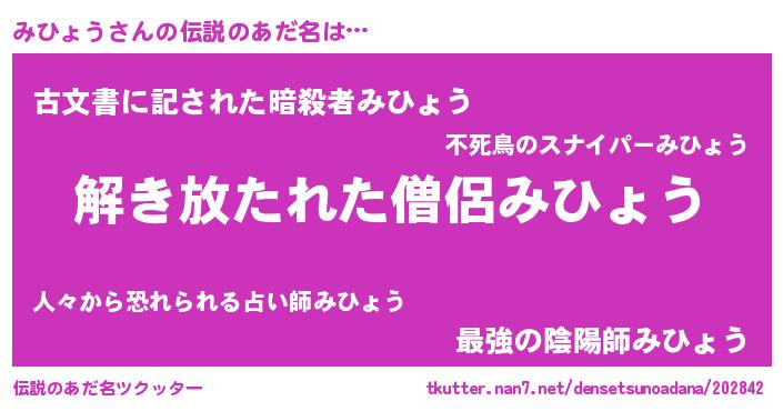 | ヘコむあだ名 | 『みひっぺ』『みひょう(笑)』 |