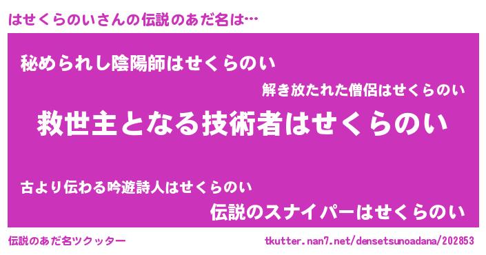 | ヒーロー風カッコイイあだ名 | 『天空の使者はせくらのい』 |