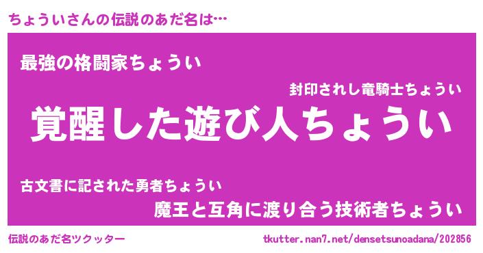 | 意味不明あだ名 | 『とにかく怪しいちょうい』 |