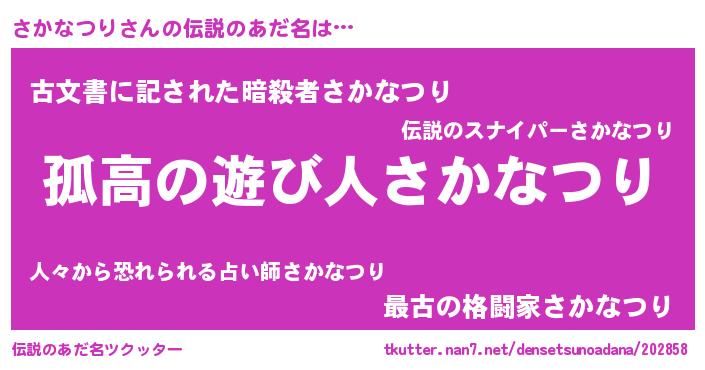 | ヒーロー風カッコイイあだ名 | 『暗黒騎士サカ』『ネオサカナツリ』 |