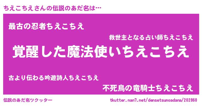 | 男性向けラノベタイトル風あだ名 | 『ちえこちえの嫁は女の子じゃないと思った?』 |