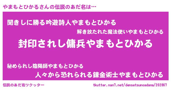 | ヘコむあだ名 | 『やまにゅー』『やまもとひかる(笑)』 |