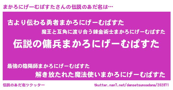 | ヒーロー風カッコイイあだ名 | 『スーパーマカロニゲームパスタ』 |