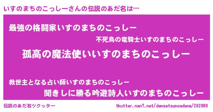 | 意味不明あだ名 | 『とにかく怪しいいすのまちのこっしー』 |