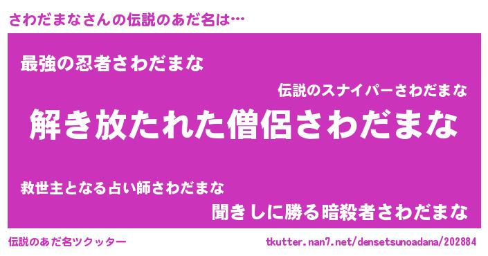 | 意味不明あだ名 | 『住所不定無職さわだまな(41歳)』 |