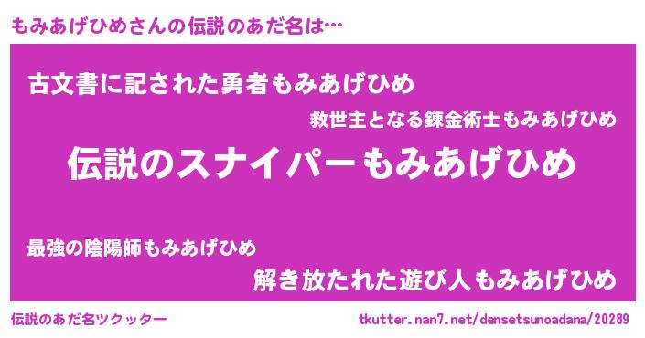 | ヒーロー風カッコイイあだ名 | 『スーパーモミアゲヒメ』『魔戒騎士モミ』 |