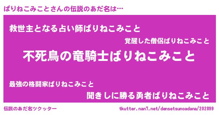 | 意味不明あだ名 | 『自称ばりねこみこと』 |
