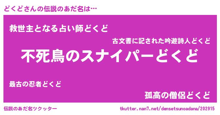 | 男性向けラノベタイトル風あだ名 | 『どくどに滅ぼされるだけの簡単なお仕事です』 |