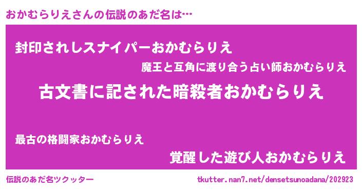 | 意味不明あだ名 | 『永久保存おかむらりえ』 |
