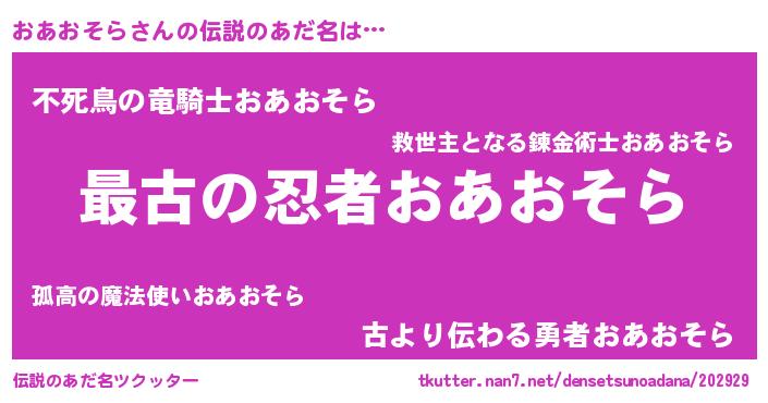 | ヒーロー風カッコイイあだ名 | 『仮面オアダー』『スーパーオアオソラ』 |