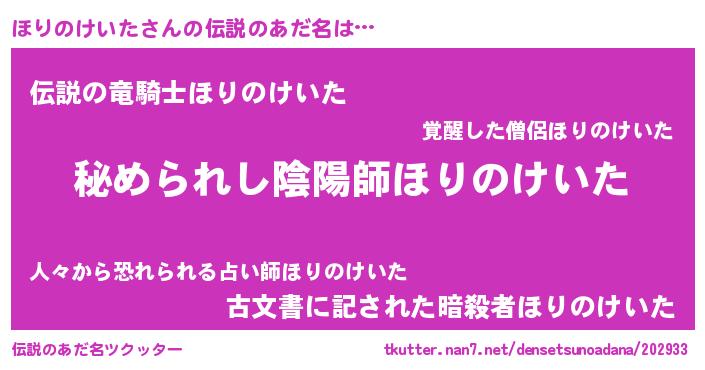 | 意味不明あだ名 | 『しいたけ科ほりのけいた属』 |