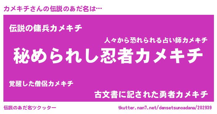 | ヒーロー風カッコイイあだ名 | 『ウルトラカメキチマン』『ネオカメキチ』 |