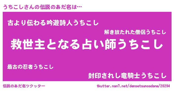 | 男性向けラノベタイトル風あだ名 | 『この素晴らしい世界にうちこしを!』 |