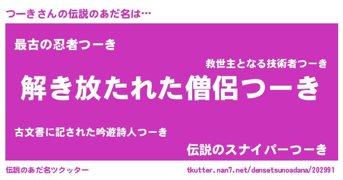 | 意味不明あだ名 | 『とにかく怪しいつーき』 |