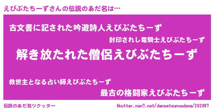 | 意味不明あだ名 | 『とにかく怪しいえびぶたちーず』 |