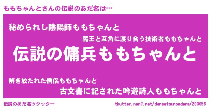 | 女子向けラノベタイトル風あだ名 | 『ももちゃんとが死なない童話 林檎のももちゃんとの診療簿』 |