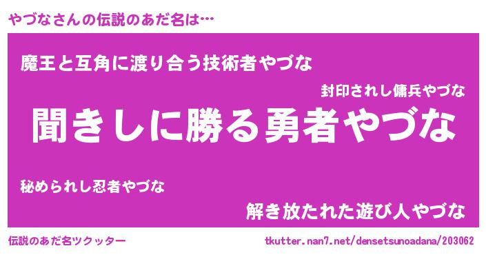 | 意味不明あだ名 | 『住所不定無職やづな(95歳)』『自称やづな』 |