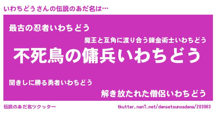 | ヒーロー風カッコイイあだ名 | 『スーパーイワチドウ』『幻影騎士イワ』 |
