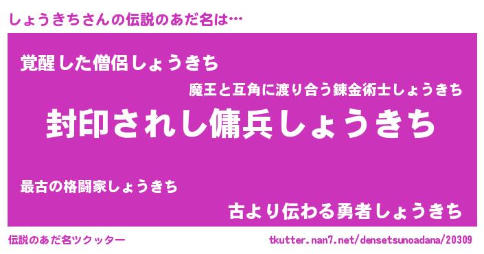 | ヒーロー風カッコイイあだ名 | 『スーパーショウキチ』『幻影騎士ショ』 |