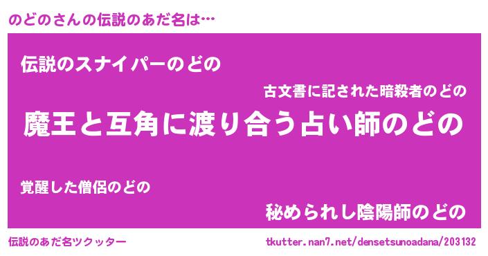 | ヒーロー風カッコイイあだ名 | 『友情の使者のどの』『仮面ノドダー』 |