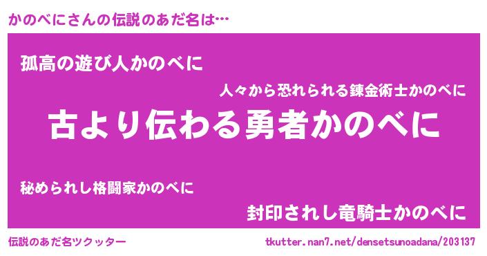 | ヒーロー風カッコイイあだ名 | 『ネオカノベニ』『暗黒騎士カノ』 |