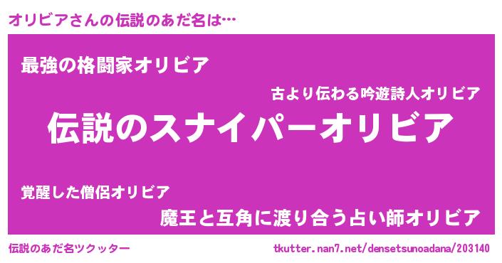 | 胡散臭い通販商品みたいなあだ名 | 『必ず成功する霊験あらたかなお札…その名も「オリビア」』 |