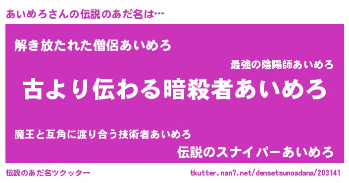 | 胡散臭い通販商品みたいなあだ名 | 『来世でも幸せになれる健康食品…その名も「あいめろ」』 |