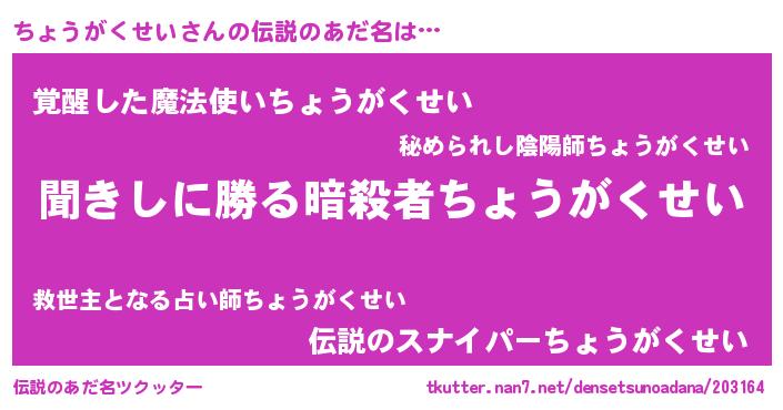 | 意味不明あだ名 | 『永久保存ちょうがくせい』 |