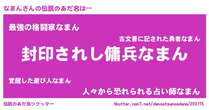 | 胡散臭い通販商品みたいなあだ名 | 『億万長者になれる水晶球…その名も「なまん」』 |