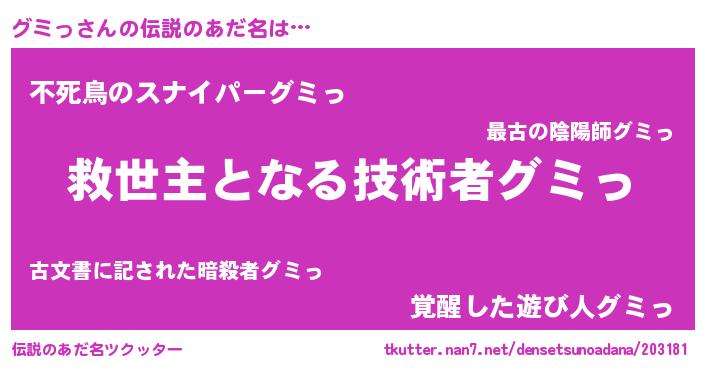 | ピコ太郎風あだ名 | 『ググ太郎』『グコ五郎』『グミ十郎』 |
