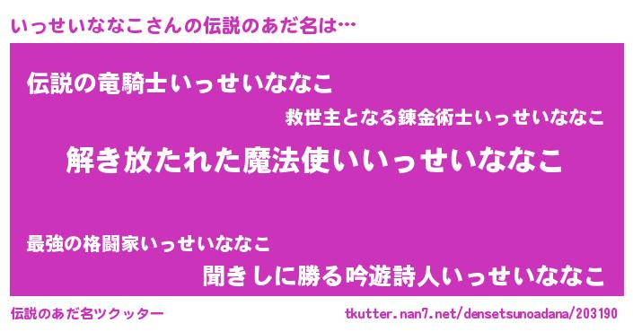 | ヒーロー風カッコイイあだ名 | 『最強戦士イッセイナナコ』 |
