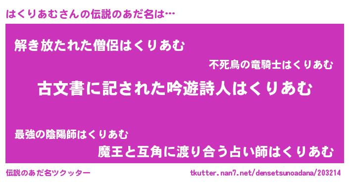 | ヒーロー風カッコイイあだ名 | 『ネオハクリアム』『幻影騎士ハク』 |