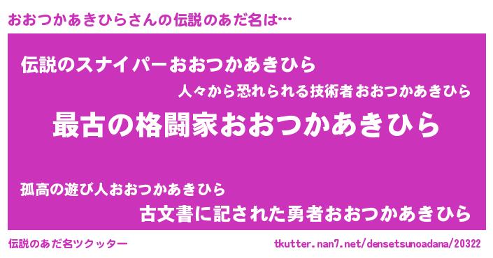 | ファンタジー風あだ名 | 『エターナルオオツカアキヒラー』 |